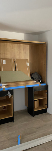 An hour later at 10am, the kitchen fitters arrived and boom our very large kitchen, dining room and snug was filled with everything from fridge freezers to saws and massive pieces of wood. By the end of the first day you could start to see the bones of the kitchen and by the end of the week they had installed enough for the Quartz supplier to come in and template.