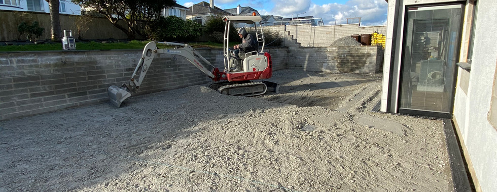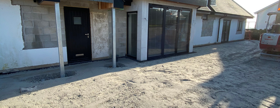 The finishing of the external works also got underway. The plan is to work from back to front. Get the back walls and parking area completed and the back garden terrace levelled and laid. The first job was to bring the patio levels up to the same levels as the inside floors and get it ready for the patio slabs to be laid, all 270sqm of them! Probably about 140sqm in just this back area.