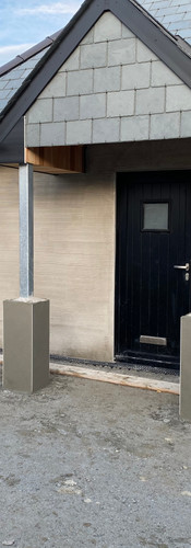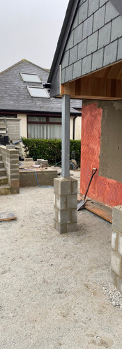 The back porch has been a "work in progress". The builders built to the architects spec, but once it was up, to me, it looked top heavy. The posts were always going to be painted black, but I still thought it needed to be balanced out, so I asked the builders to build it some boots. We will top them with slate and paint them white to match the rest of the render. I think they have made big difference and we are getting there now. Still not happy with the top bit, so a bit more tweaking to do.