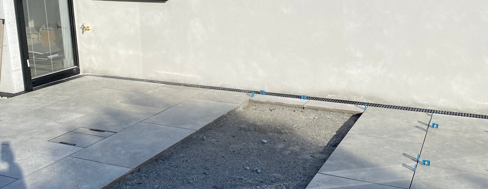 The back of the house, parking and patio areas are so, so close to being finished. Paul and the team are working their way forward, moving everything (rubbish, materials etc.) to the front of the house as they complete each of the sections. I am sure our neighbours opposite at the back are very please do have a tidier view and see that Porto Loo disappear.