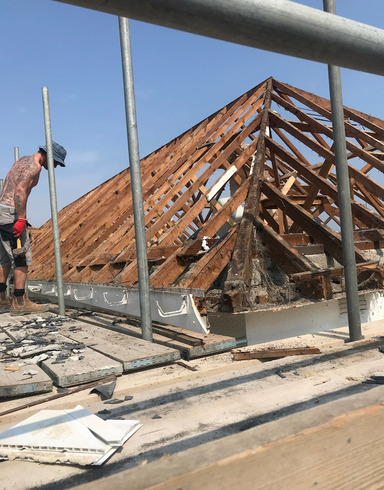 As every tile and rafter disappears the views improve for the neighbours behind. Only two of our neighbours responded negatively to our plans and they live directly behind us. Unfortunatly as much as they will enjoy the views with the roof off, I suspect once the new roof goes back on it will feel much, much bigger and drag up all their negative feelings all over again.