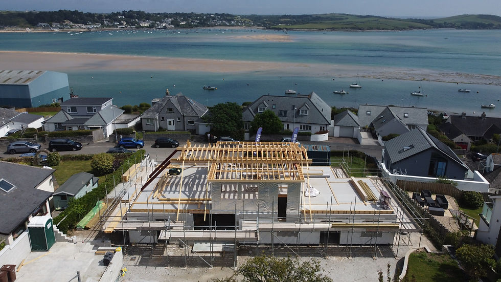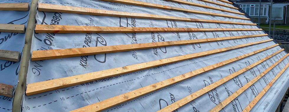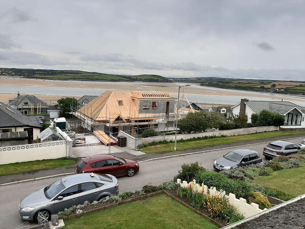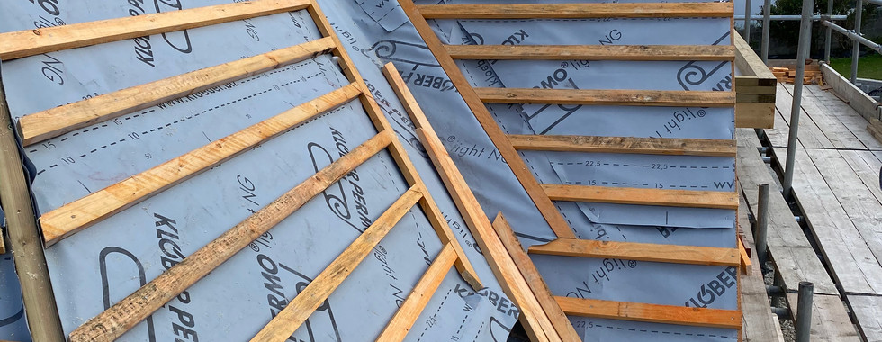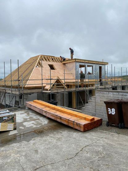 The roof structure is still not complete, but to be ready for the roofers the guys started to to get the sarking board on. Doesn't keep us dry, but gets us closer at least.