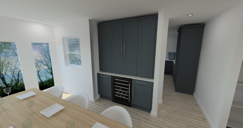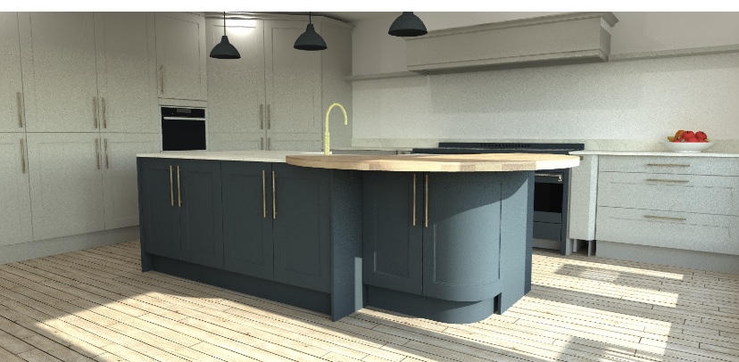 Here are a few 3D's. The colours we have chosen are not the same as shown in these pictures, we have gone for three F&B colours but unfortunately the kitchen CAD can't replicate them very well, but I think this gives some representation of the look we are going for.