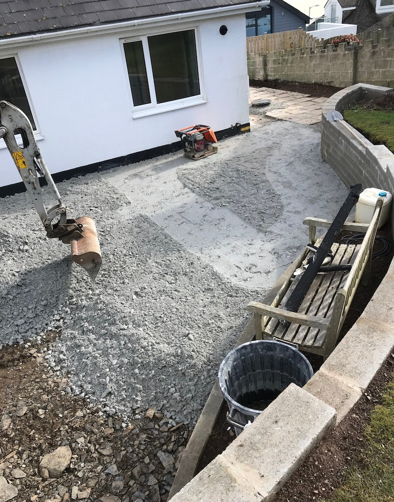 No we don't own an agregate company, but we did laugh when the lorry arrived to deliver the hardcore and it had our surname all over it. You will see as you slide through the picture below what a difference it has made again to what will be our back patio area. It is now ready for scaffolding to be put up and for the guys to use to lay off materials etc.