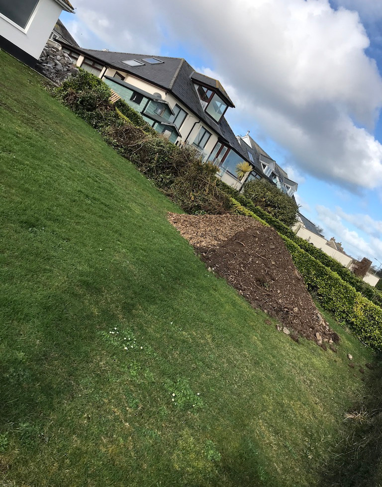 While we had the digger here for the drains, Paul also opened up the side patio and dug out ready for the new hedging. We will need about 20 meters in all.