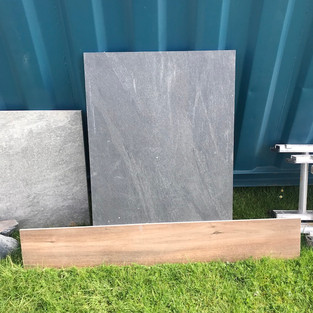 Rob from Contec came to see us on Tuesday with samples of stone and tiles and to give us some advice on how best to grass the top of the garage. This is the stone we like best, comes from a quarry in wales and unlike the stone from local quarries we can control the amount of brown we have. Short lead time which is great, but still very expensive per square metre.