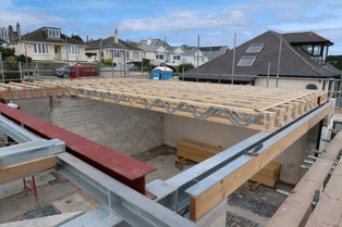 Week 27, Will, our carpenter arrived on site and what seems like no time at all, got all the joists into place. This really changed the feel of the place again and gave us the opportunity to climb up (very carefully) onto what would be the final floor level of the upper floor. This is about 2.5ft above the scaffold height and I hadn't expected it to make such a difference to our view, but wow it was stunning, giving us an even clearer view of the Estuary.